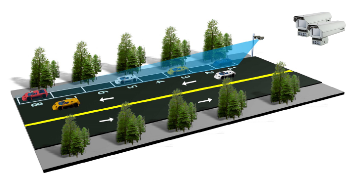 路内高位摄像头通过高位摄像头对拍摄范围内车位进行检测,实现停车费自动计费,自动扣费。